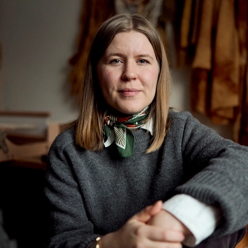 - Käsityö [ kæ-siˈtu-ø ] - Med utgangspunkt i käsityö - kvensk håndverk - ønsker Kummeneje Mellem å skape en arena for dialog og belyse generasjonsgapet i overføringen av kunnskap. I løpet av flere år har hun dykket ned i kvenske håndverkstradisjoner med et ønske om å revitalisere tradisjoner som er i ferd med å forsvinne. Ved å spørre seg frem blant folk, om materialer, teknikker og praksiser, har hun jobbet frem et personlig arkiv av immaterielle fortellinger. Slik bindes den kvenske kulturen til steder, landskap og ressurser, men de store hullene i tradisjonene må hun selv fylle. MFA Kunstakademiet i Tromsø BA Kunsthøgskolen i Oslo, Kunst og håndverk Oslo Fotokunstskole Portrettfoto: Rikke Løe Hovdal