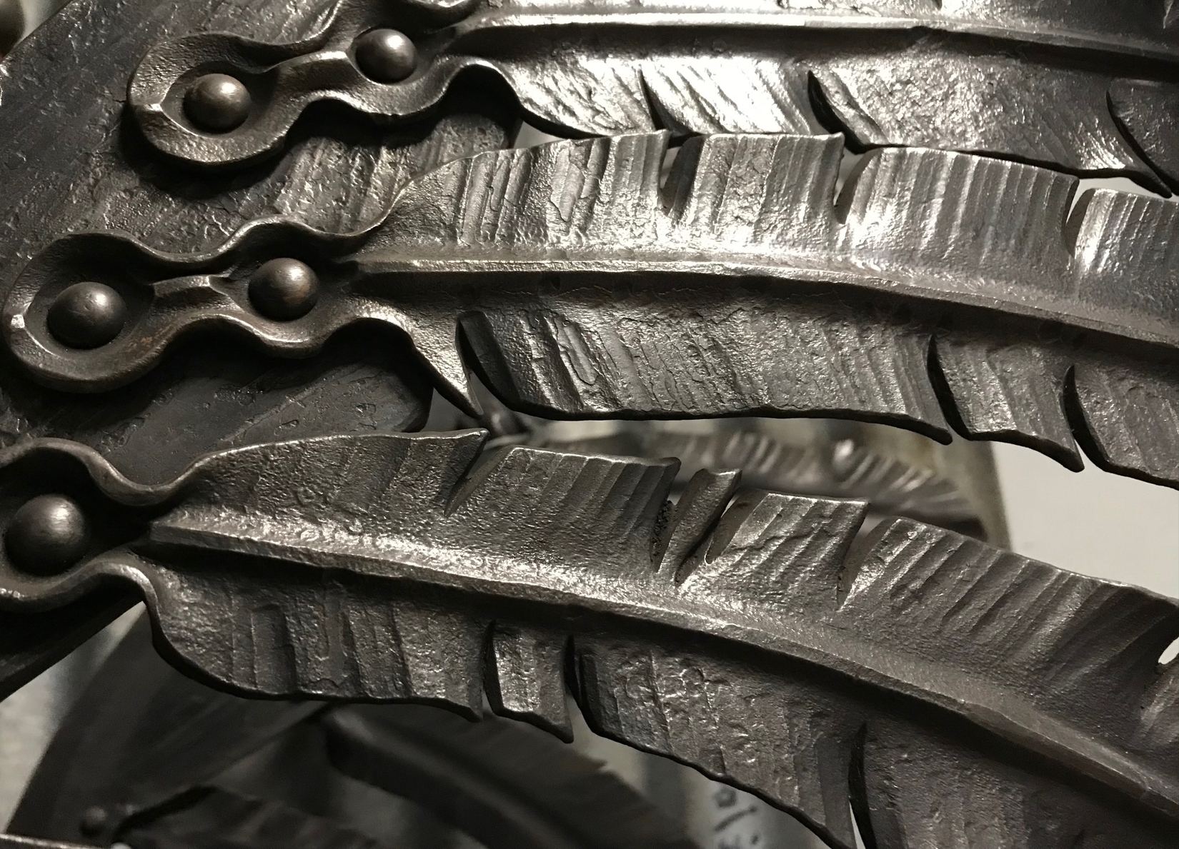 Somatism Nr 1: The Walls Have Ears, nærbilde. Installasjonen består av 70 stk smidd ører, hvorav alle av ørene er litt forskjellige. Hvert øre er ca 100mm x 50mm x 25mm.