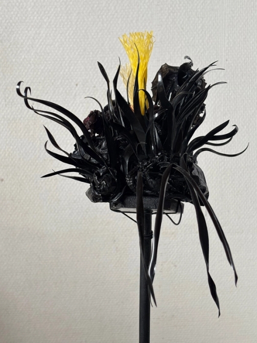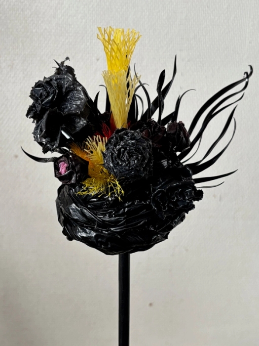 De siste årene har Bodil Buchacz jobbet kun med plastavfall som materiale i smykker og andre mindre objekter. Gjennom det kunstneriske uttrykket forsøker hun å problematisere plastforsøplingen. Vi står ovenfor en menneskeskapt miljøkatastrofe og plastforsøplingen er ett av bidragene til den. Plasten eter seg inn over oss både til lands og til vanns, og det kan føles som om den etter hvert transformeres til natur. Kloden kveles. Et paradoks er at vår kunnskap om plastforurensing og dens konsekvenser aldri har vært bedre enn nå, og vi har aldri forsøplet mer enn nå. Buchacz anvender plast av den typen vi har i hendene hver eneste dag: matemballasje, bæreposer og grønnsaksnett. Ingenting er for lite eller ubetydelig til å kunne brukes, en overkjørt taustump med en knute på, funnet i veikanten, kan være akkurat det som trengs for å sette prikken over i en på f.eks. en hatt. Elementene formes, rives og klippes i og sys sammen med fiskesnøre. – Plastproblemet får heldigvis mye fokus fra mange hold. Kunsten åpner opp for en annen vinkling enn den vitenskapelige og politiske og jeg har tro på at den dermed kan sette andre spor, uttrykker Buchacz.
