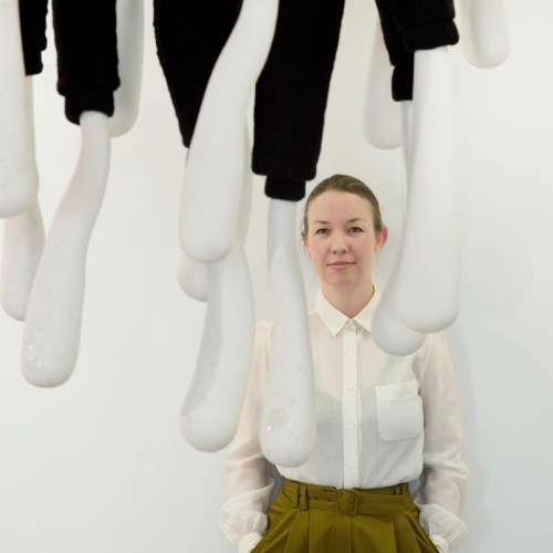 Installasjon Materiale/teknikk: Porselen,hønsenetting og tekstil. 2019, «Vrengt» Kunstnergruppen SEFF! Galleri Blaker Skanse, Lillestrøm
