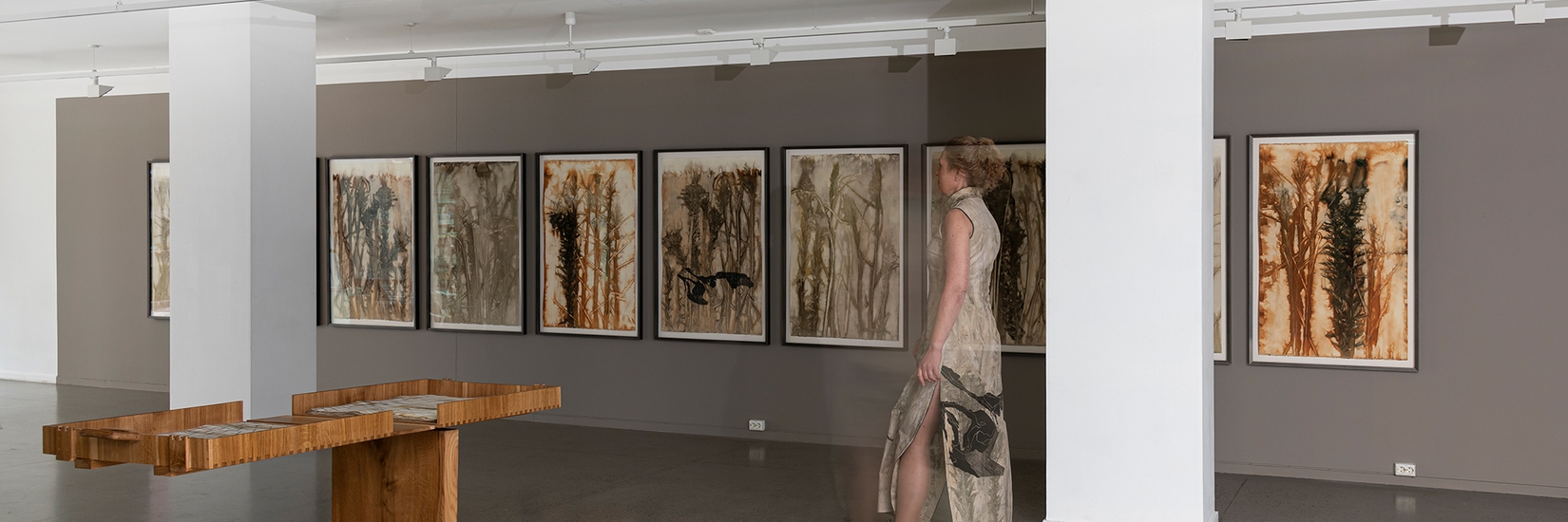 Cathrine Finsrud (f.1977) er utdannet med MA i materialbasert kunst fra Kunsthøyskolen i Oslo, med spesialiseing i grafiske teknikker og steds spesifikke verk. Hun bor og arbeider i Drammen. Finsrud jobber aktivt innenfor en rekke medier og fagområder som grafikk, metall, skulptur og steds spesifikke uteverk og har derfor en bred faglig kompetanse. Arbeidene hennes er materialbaserte og utforskende undersøkelser av menneskets relasjoner til natur, systemer og tid. Fagpolitisk har Finsrud vært engasjert i Norske Grafikere gjennom flere år som styremedlem, nestleder og nå styreleder. Hun er i styret til Buskerud Bildende Kunstnere og i innstillingskommiteen til regionale prosjektmidler.
