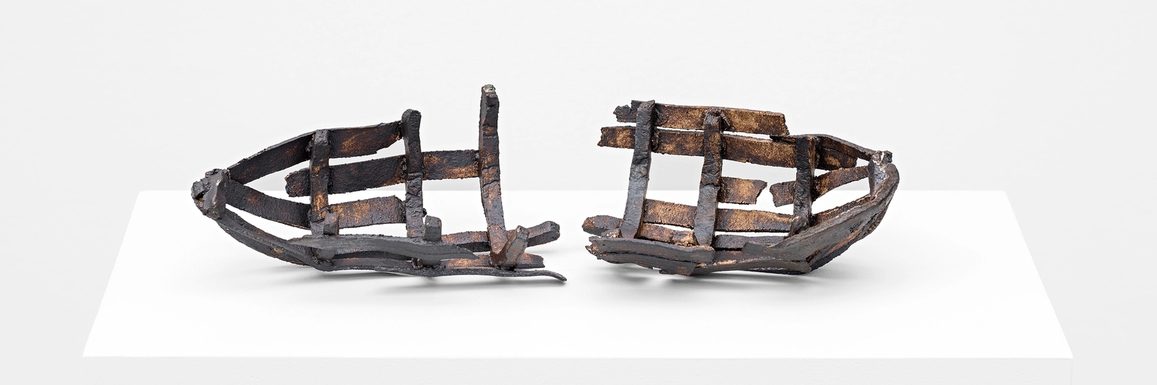 Antatt høstutstillingen, Statens kunstutstilling 2020Verket er inspirert av et forlis min sjøsamiske bestefar opplevde på 50 tallet. Etter endt sesongfiske lå sjarken i Skjervøy havn, og ble kjørt i s…