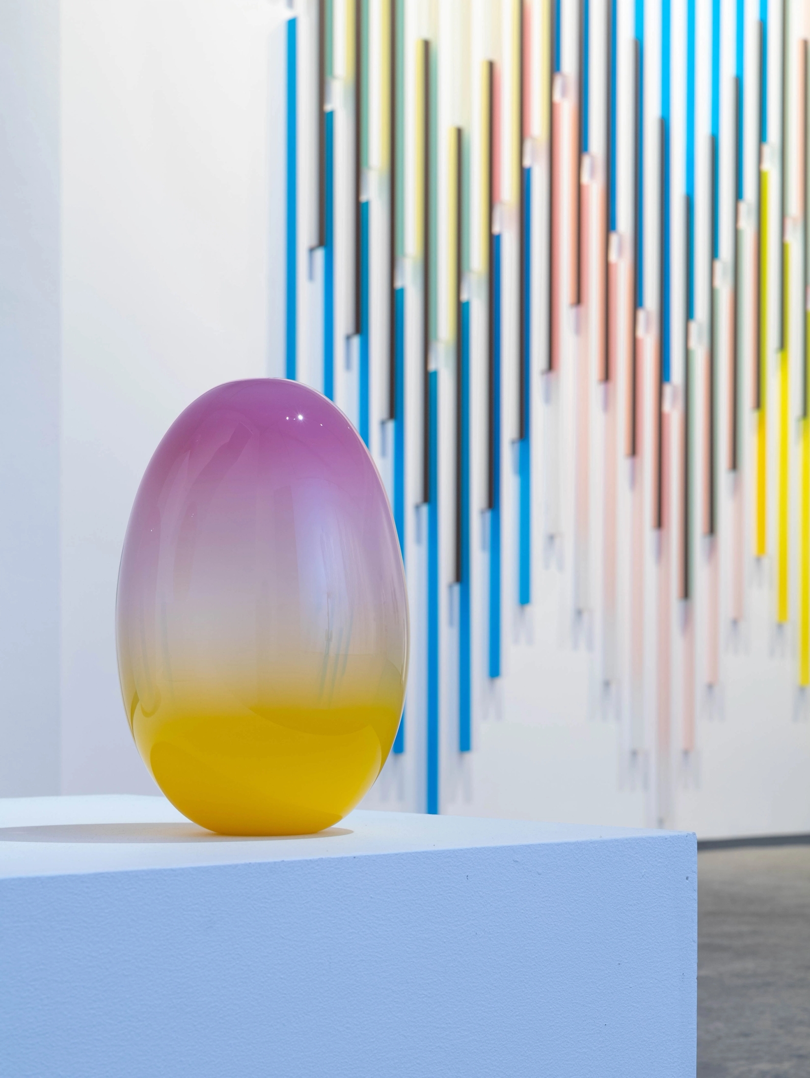 Galleri Dropsfabrikken En utstilling med Edith Lundebrekke og Eirin Bjørsland Hansen hvor begge utforsker samspillet mellom farge, lys og bevegelse på unike og komplekse måter.