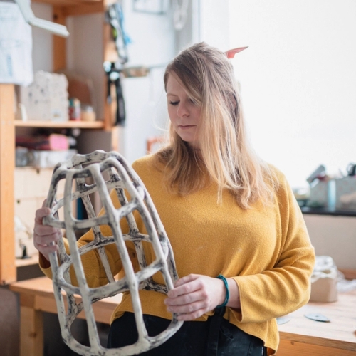 Eleonore Griveau (b.1994, France) holds a BFA from the Art Academy of Tours, France, and a Master of Fine Art from the Art Academy of Bergen,Norway, where she lives and works. She is founder and director of Cone 7-Ceramic Workshop and runs the Cone 7 Residency Program.The Interaction between living organisms and their physical environment has been the core of my current artistic research and leads to the making of active objects evolving to self-destruction. Accumulation of geometric forms, ceramics and electronics, ecological interactives, and still installations reflect the human-dominant influences on contemporary ecosystems.