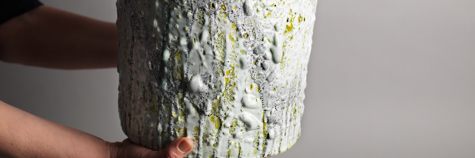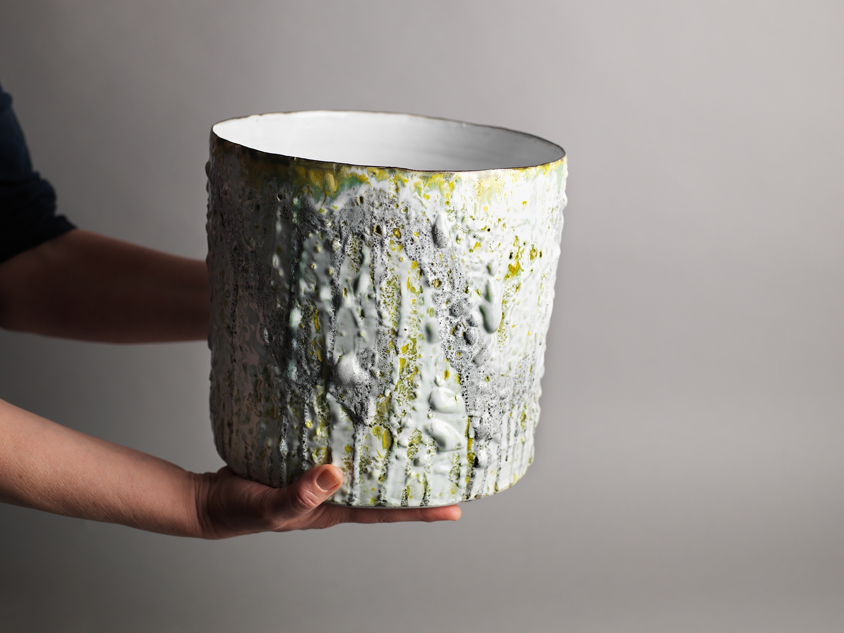 Mina Kärl handlar om enkelheten och det som är vackert. Kärlet är en klassisk arketypisk form och objekt som jag älskar för dess enkelhet, och just för att den alltid har existerat. Jag bygger kärlen förhand genom att ringla upp väggen och så modellera den för att få den jämn, på så sätt kan jag behålla den tunna väggen och den stora volymen i kärlet. Byggprocessen kan ta ca 3 - 4 veckor då jag bygger ca 5 cm var till varannan dag beroende på tork processen, den långsamma rutinmässiga arbetsprocessen blir en meditativ process där kontakten uppstår med den känsla som till slut ger Kärlet dess uttryck.