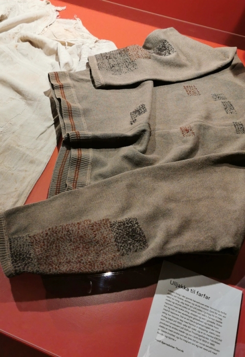 GRUPPEUTSTILLING OG KURS Ullinsvin i Vågå. Kurator: Kirsten Visdal Til denne utstillinga viste eg blant anna Ulljakka til farfar med teksten: -Jakka hang i det gamle hønsehuset etter farmor og farfa…