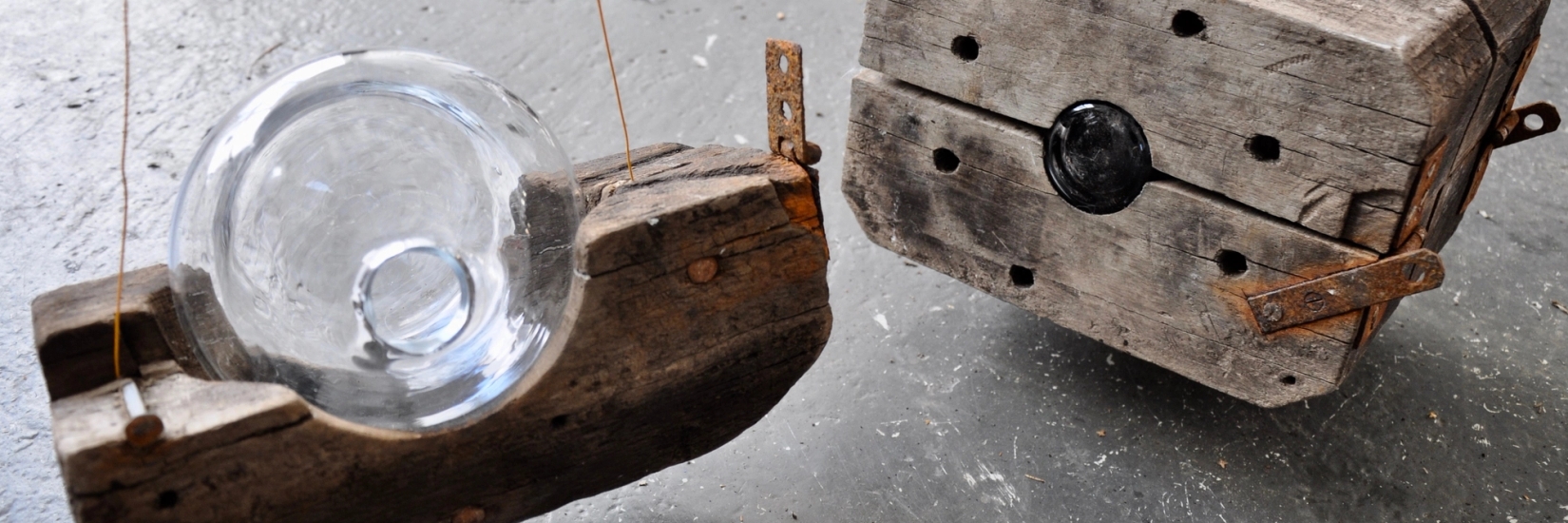 COLLABORATION Verket « Collaboration" startet ved oppdagelsen av gamle treformer, formet som hule skall, i en bekk i skogen der jeg bor. Jeg gravde de opp, og satte de i stand. Forrige eier av ste…