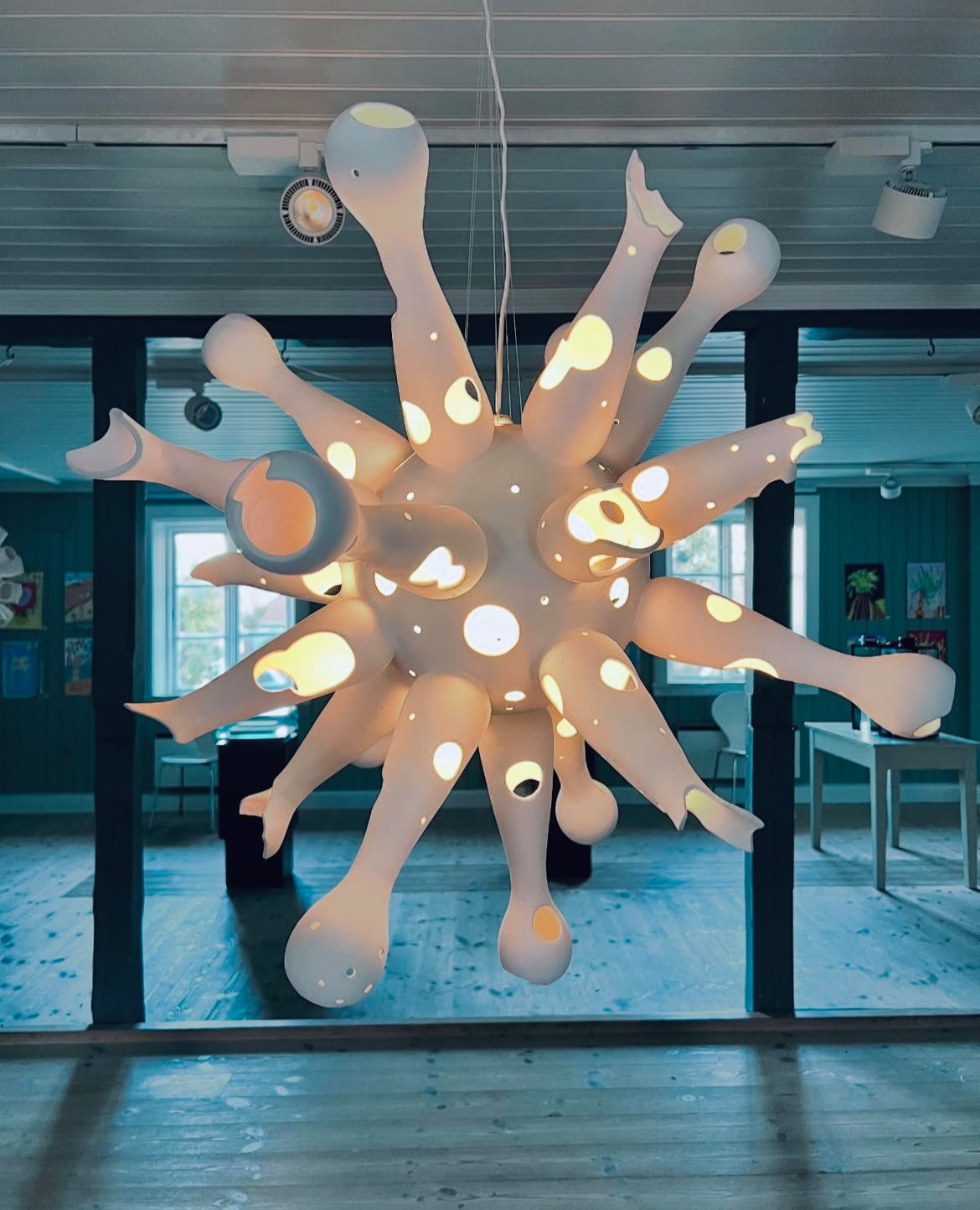 Utstilling på Huth Batteri på Fredriksten festning i Halden. Lysende skulpturer i porselen, inspirert av plankton. Jeg stiller ut sammen med billedkunstner Line Bergseth. Ø=ca 35 cm.