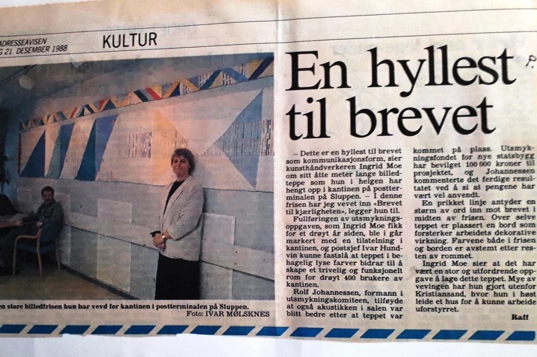 Utsmykking Nkom (tidligere Post og teletilsynet) Nybygg Lillesand. % meter H x 3 m B