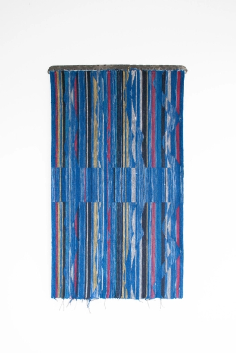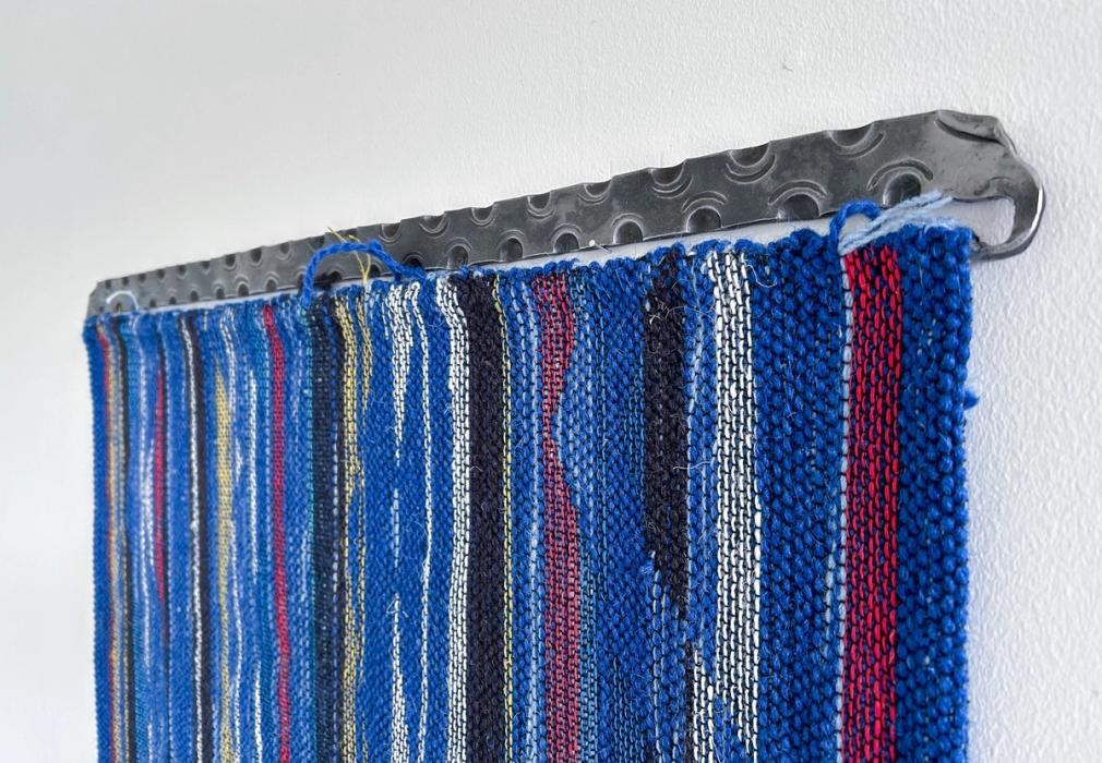 ‘Layers of Memory’ consists of a hand woven textile and a text on the wall.Text on the wall:Lay down on layers of earth, layers of dust, layers of sand, layers of peat, layers of roots, layers of clay…
