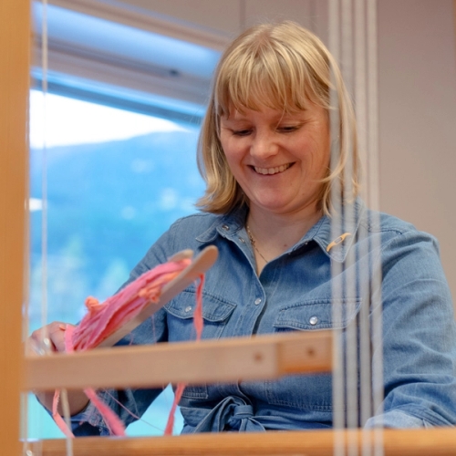 Isfrid Angard Siljehaug (f. 1986) er kunstner og tradisjonshåndverker, og jobber primært med veving, trykk og tekst. Ofte kan du finne kombinasjonen av tekstiler og dikt i arbeidene. Isfrid vever på flatvever og ofte med utgangspunkt i tradisjonelle mønsterbindinger fra Nord-Europa og Skandinavia. Isfrid inspireres av hvordan skaftsystemet i en flatvev setter ramme for tekstilet og ved å eksperimentere med bruk av innfarging og andre teknikker får hun frem sine egne motiver i vevnadene. Isfrid har tidligere bodd og jobbet over 15 år i Amsterdam, har sin kunstutdannelse fra Gerrit Rietveld akademiet. I sitt verksted på Dovre jobber hun med kunstprosjekter, oppdrag og underviser ved Hjerleid handverksskole.