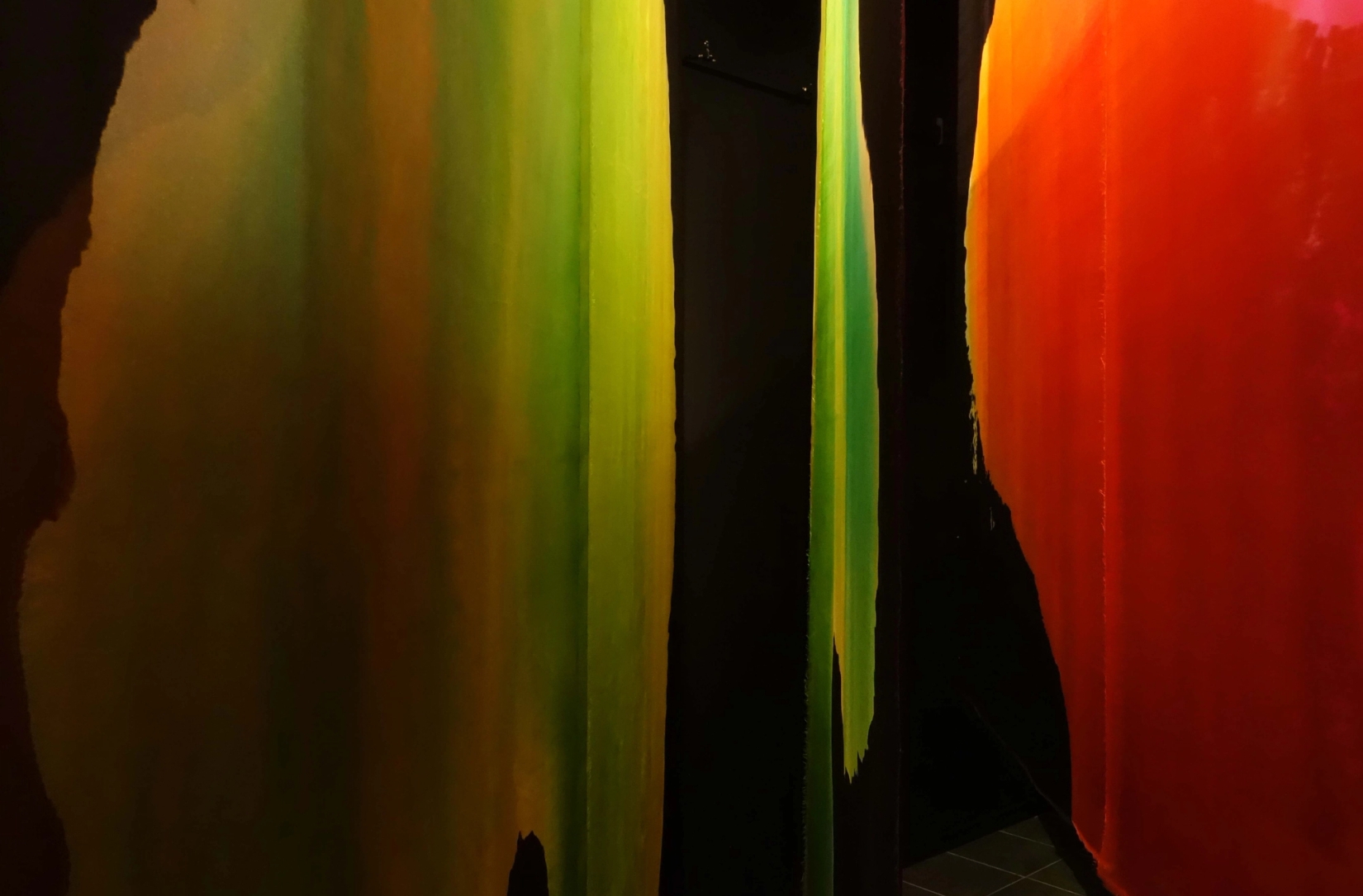 Akvarell i silke Elleve lag silkeorgansa 2 x 2 x 2 meter Lørenskog kunstforening 2018