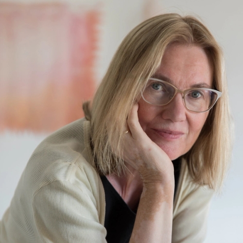 Installasjon i farget silkeorgansa, 33 kvadrater á 2 × 2 meter, Sogn og Fjordane Kunstmuseum (2020/21) og Skiens Kunstforening (2022)