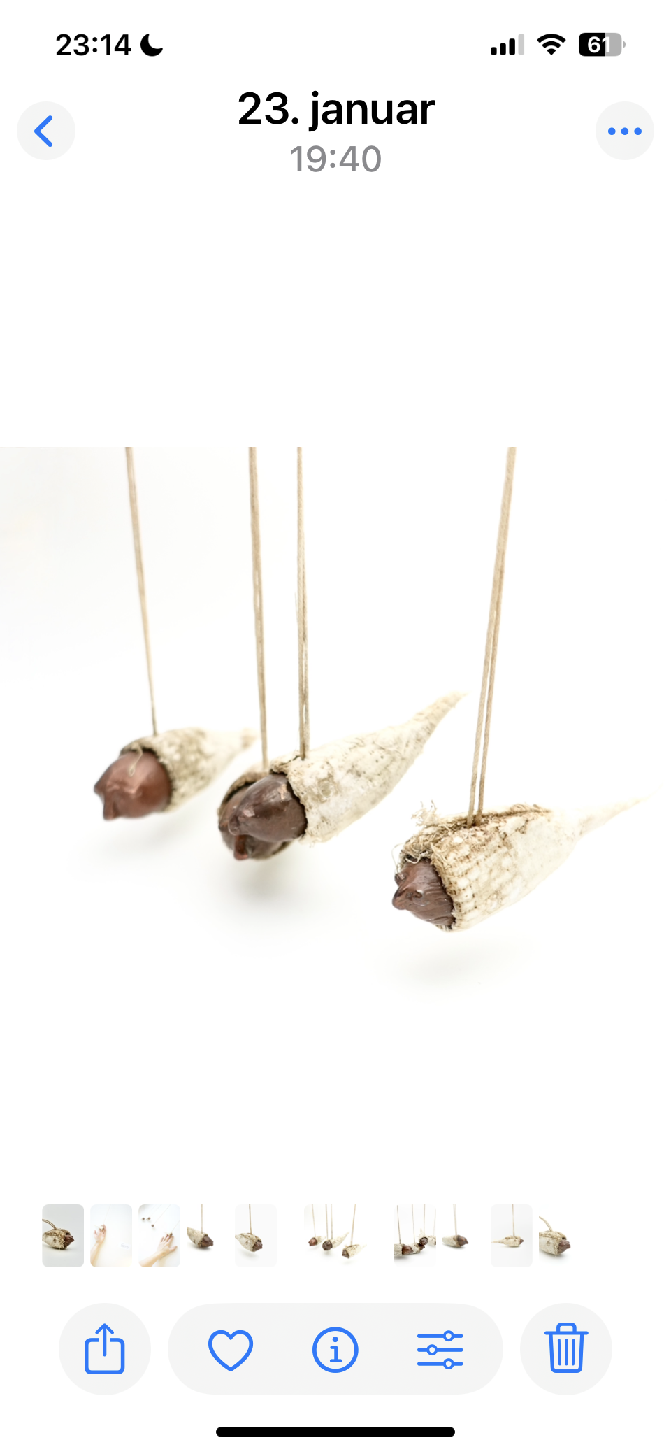 I have hung myself up on the wall. 4 versions of a human seed inside a cocoon. Here I hang, in my cocoon that encapsulates my inner private and outer more visible transformations. Like a dark metam…