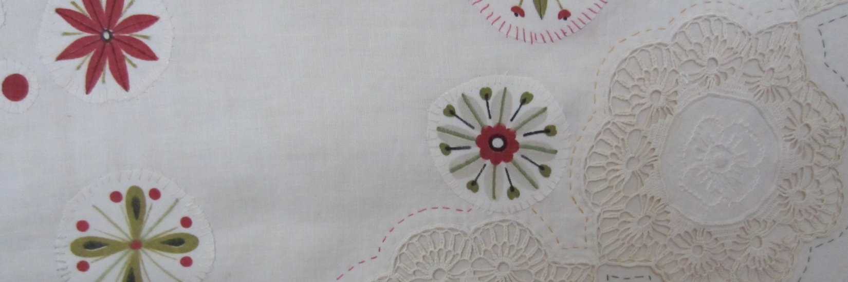 Broderi, collage, stofftrykk