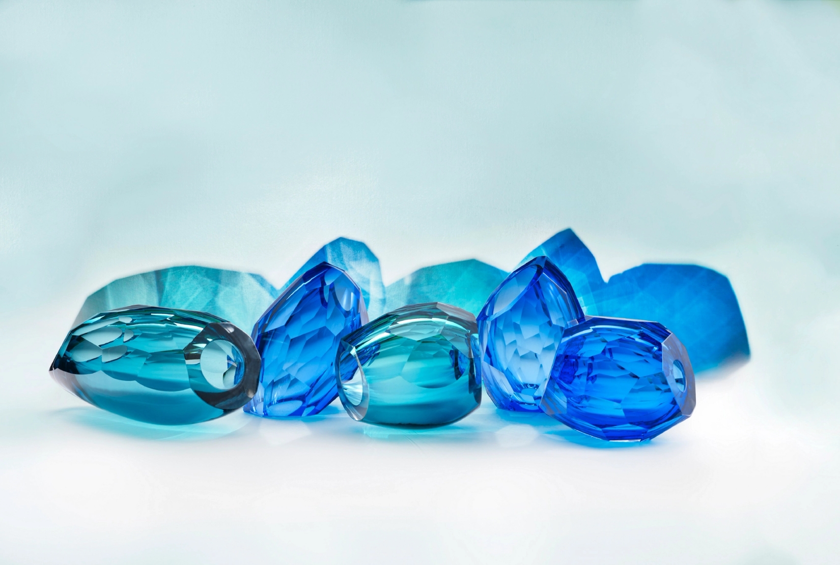Skulpturer i glass inspirert av den nordnorske naturen og oppvekst i nord. Havet og lysbrytninger.