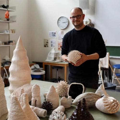 Verkene består av objekt med ulik størrelse lagd i høybrent steingodsleire, formet for hånd med pølseteknikk. Tynne pølser med leire blir lagt opp på hverandre, og objektene oppstår gjennom å repetere…