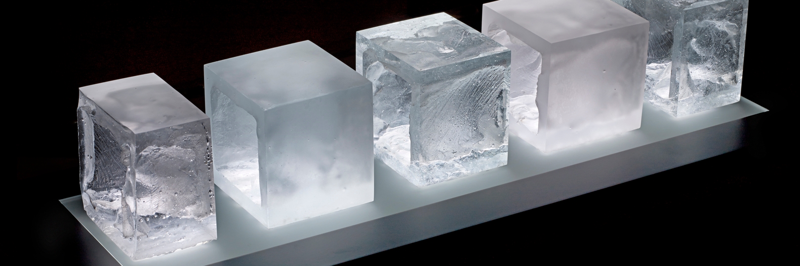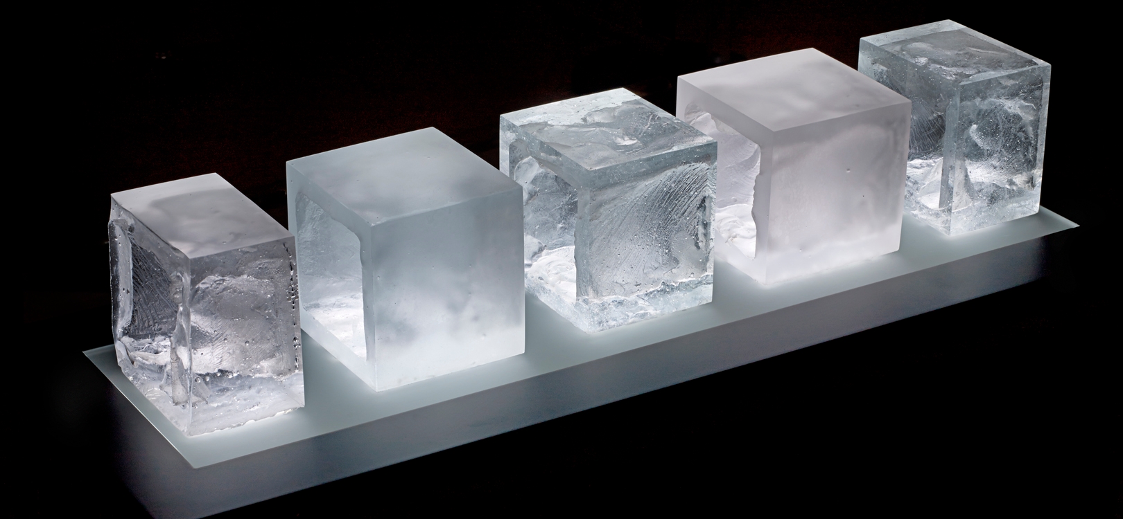 Expectations, innkjøpt av Svalbard Museum etter min separatutstilling Arctic Glass hos Galleri Svalbard. Samarbeid med Vimmel AS som integrerte LED lys i et podie laget av Moment Interiør.