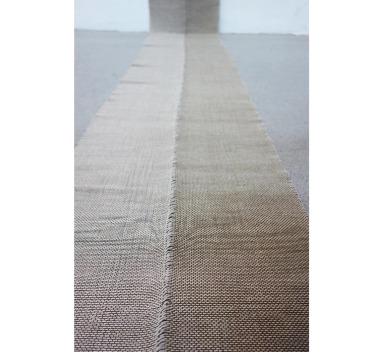 Ullrenning plantefarget, lin 8/2 ubleiket innslag, lin 8/2 ubleika plantefarget innslag. Dobbelvev med bukt.