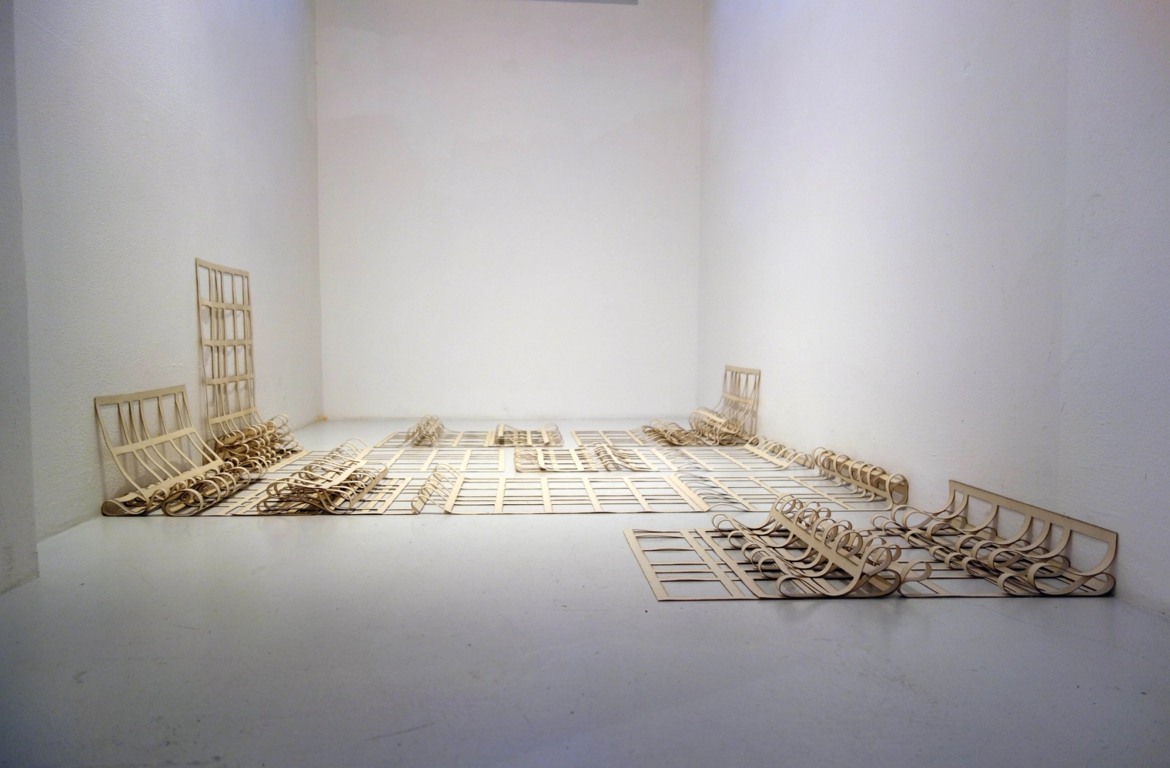 Tekstil, tre, farge. Grid fordrer et løfte om orden. Men som alle system forblir de iboende ustabile. Tekstillagene bøyer seg som om de motsetter seg sin egen geometri. De er ikke faste systemer, men…