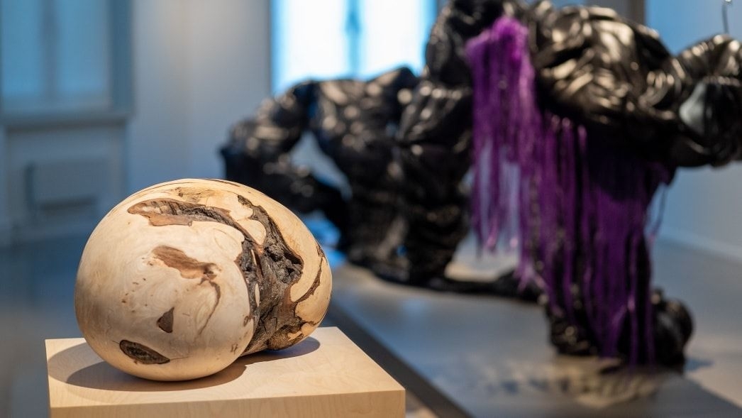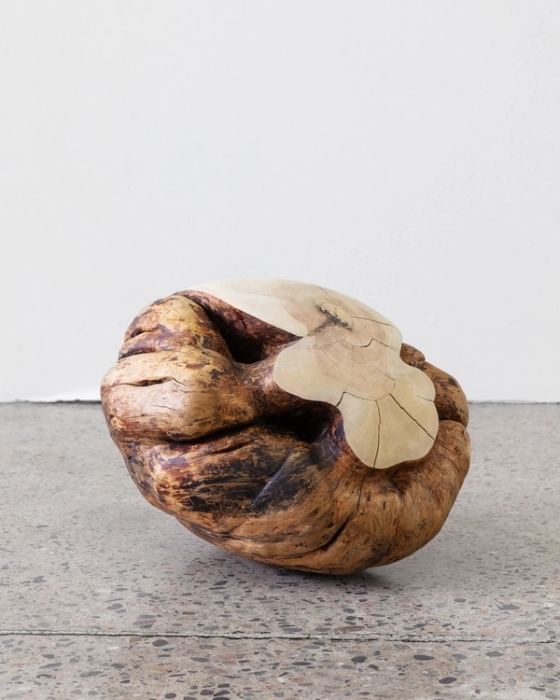 Utskjæringer i funnet fururot 24cm x 37cm x 34cm 2023 "Reality Check", 2024. Royal Society of Sculptors. Dora House, London, United Kingdom. "A mountain-pine root, lifted from the forest and shaped