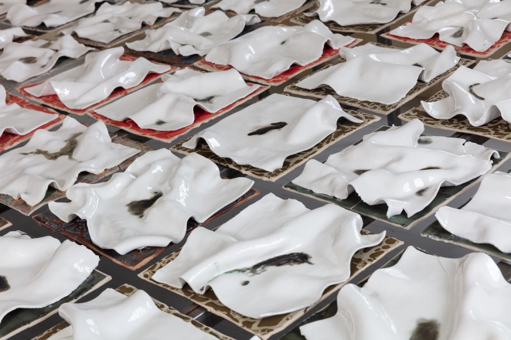 Foto: Tor Simen Ulstein v/Kunstdok - Bomuldsfabriken I hver sal presenteres store, keramiske installasjoner, som både bryter og utfordrer materialets unike kvalitet, historie, muligheter og begrensing…