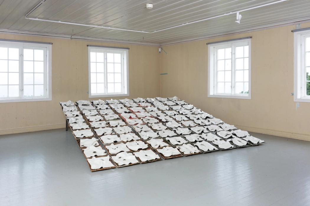 Foto: Tor Simen Ulstein v/kunstdok - Gjesterommet «Kryss» er en revitalisering av et tidligere stedsspesifikt verk produsert til galleri S12 i Bergen. Byggeklossene i porselen er de samme. Formen er n…