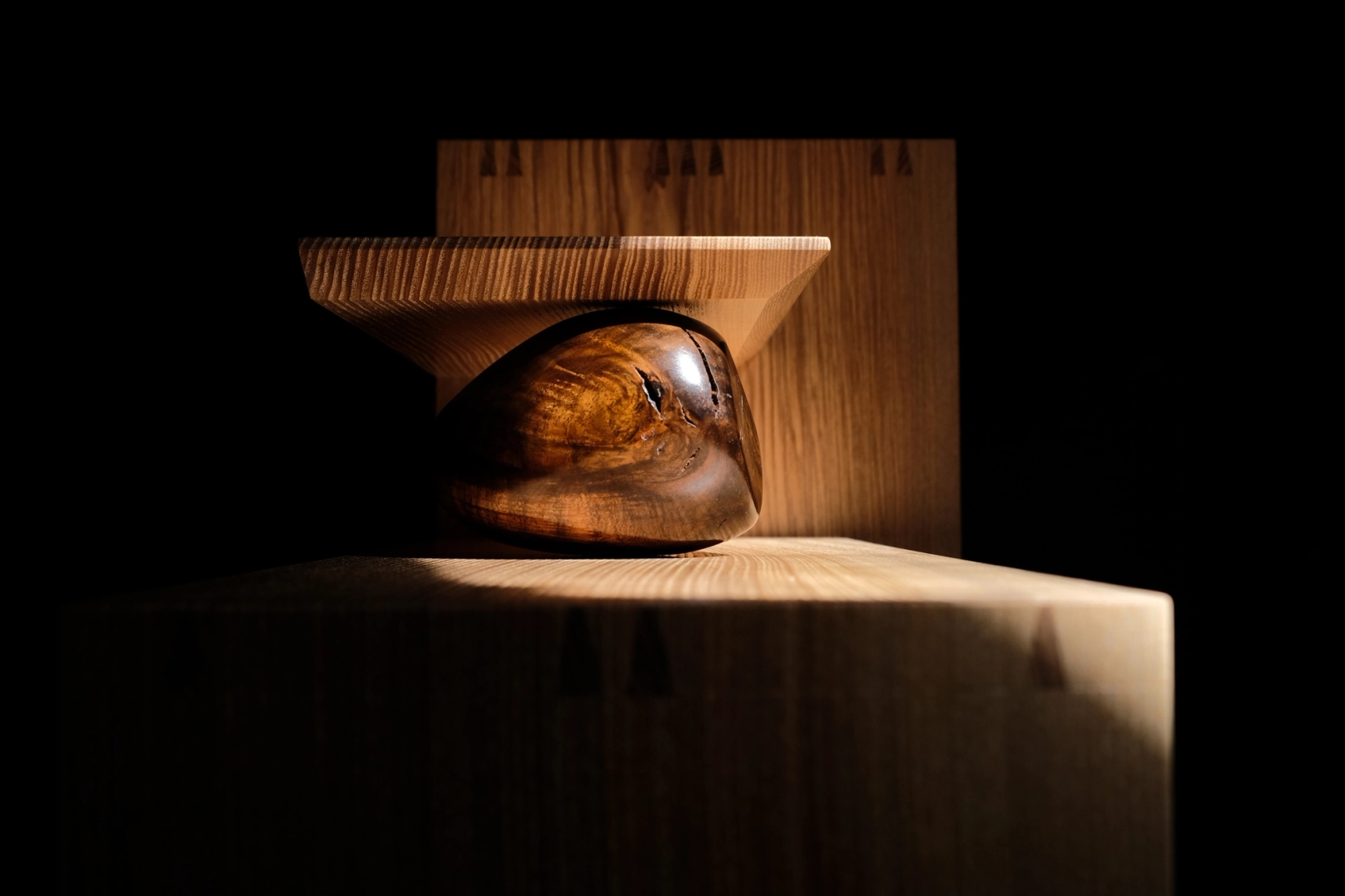 It’s not uncommon here in Norway to see beautiful old “laftet” barns and buildings resting on stones to level up the ground they were built on.This piece plays around with that idea, accentuated by co…