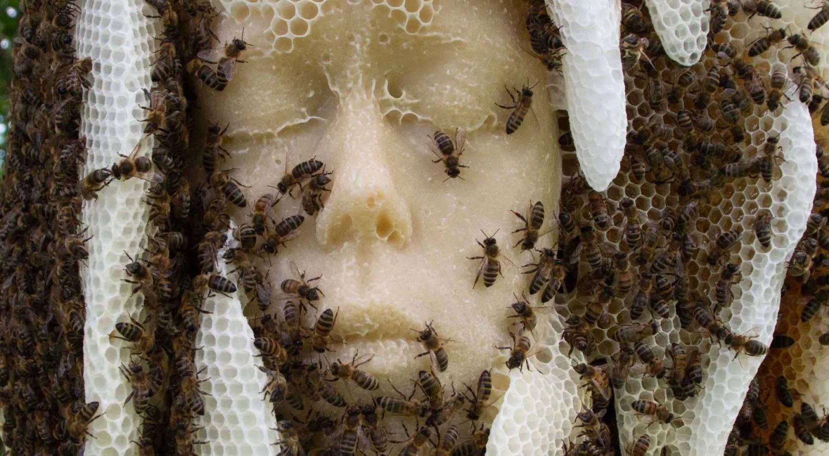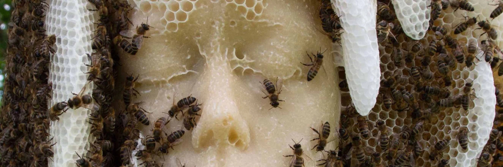 Da jeg arbeidet med verket SVERM fikk jeg et intenst behov for å komme nær en levende sverm, og i 2014 ble jeg birøkter. I 2020 plasserte jeg bivoks avstøpninger av min egen byste inn i bikuber. Biene…