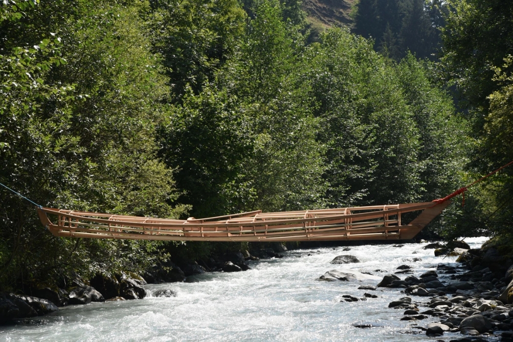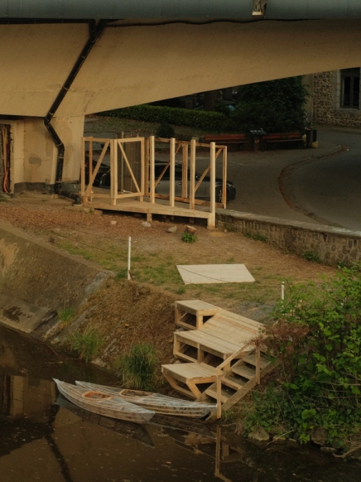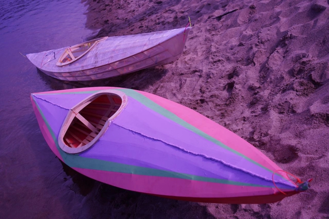 Rivera Charpentier An installation where a boat meets the river not in alignment, but through a deliberate perpendicular crossing. This tension reveals both connection and rupture—how craft touches na…
