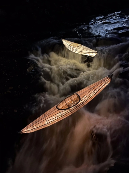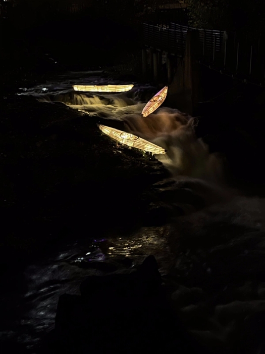 Where the Current Speaks listens to the flowing pulse of the Alna river. Light traces the water’s shifting course, revealing its rhythms in the dark. The installation forms a gentle space where the vi…