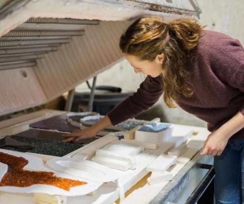 I was raised and educated in Slovakia and received my MFA in 2017 from Academy of Fine Arts and Design in Bratislava, SK. During my studies I was drawn to Scandinavia and studied Metal at Høgskolen i Sørøst-Norge, Norway and glass and ceramic design at Häme University of Applied Sciences, Finland. As an intern at S12 Galleri og Verksted, Bergen, I began depicting movement using color that runs through the permeable glass canvases I create. Summer of 2019 I was an Emerging Artist in Residence at Pilchuck Glass School, USA, and I was able to fully integrate using 3d modeling, cnc, and laser cutting into my practice.