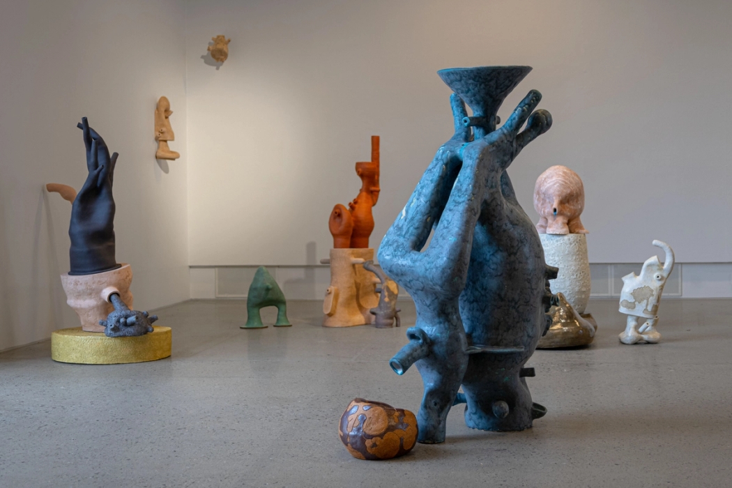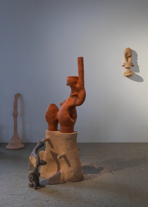 Two larger sculptures that were part of the group exhibition 'In The Corner Of My Eye' in RAM Galleri.