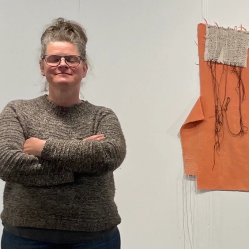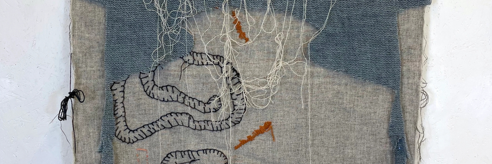 FALSE FLAGS med kneleputeFalse flags er et prosjekt der jeg undersøker bruken av overskuddsmateriale og broderi. Med stoppenål og løse tråder monteres ulike stoffer, teksturer, formater og tegn til fl…