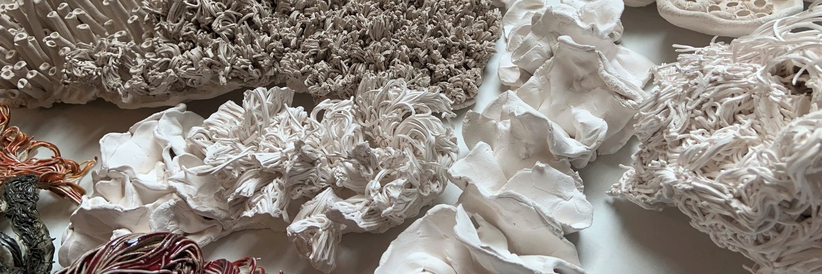 Mitt kunstneriske prosjekt handler om å skape og formidle unike håndlagede funksjonelle objekter, taktile skulpturer og romlige fortolkninger. Fortrinnsvis former jeg elementer og objekter for hånd og praktiserer en nær og leken tilnærming til materialene. Arbeidsprosessen er intuitiv rask og fri, men også møysommelig tidkrevende og repeterende. Ofte den samme formen, men med de små endringene, som oppstår gjennom å forme med egne hender. Min bakgrunn fra tekstil og keramikk har inspirert meg til å arbeide med å utforske kombinasjoner av disse materialene, for å oppnå bevegelighet og klang. Balansen mellom mennesker og natur opptar meg og jeg finner inspirasjon i mektige naturfenomener.