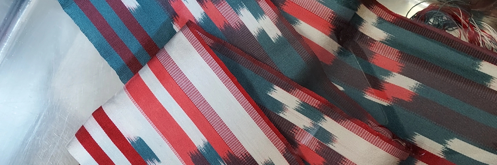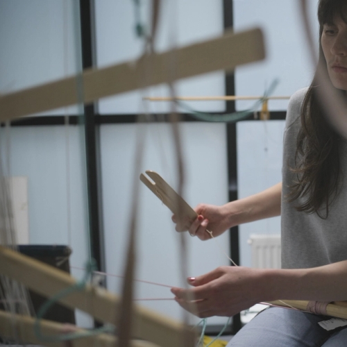 To vevnader med mønstring hentet fra et spedbarns søvndata. Ikat-farget silke.