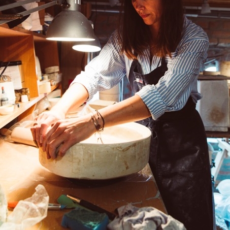 Jeg jobber i skjæringspunktet mellom design og kunst. Porselenet appellerer til de taktile sansene, du har lyst til å ta på objektene. Berøre med hendene, leppene og øynene. Du vil bruke dem i hverdagen din fordi produktene er håndlagde og karakteriseres av kvalitet, overraskende detaljer og brukervennlighet. Det som fascinerer og interesserer meg med design, med funksjonelle objekter, med kunsthåndverk er hvordan tingene som omgir oss påvirker oss, både rent fysisk og på et mer konseptuelt plan. Foto portrett: Adams matkasse