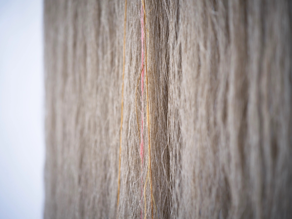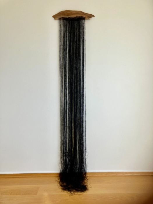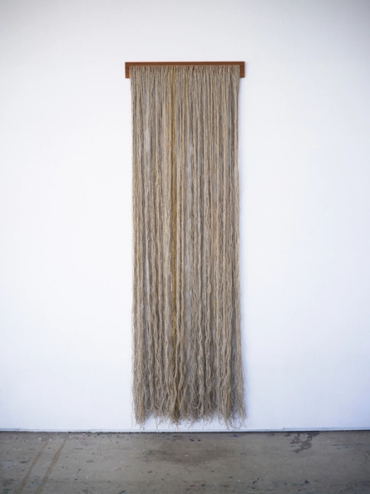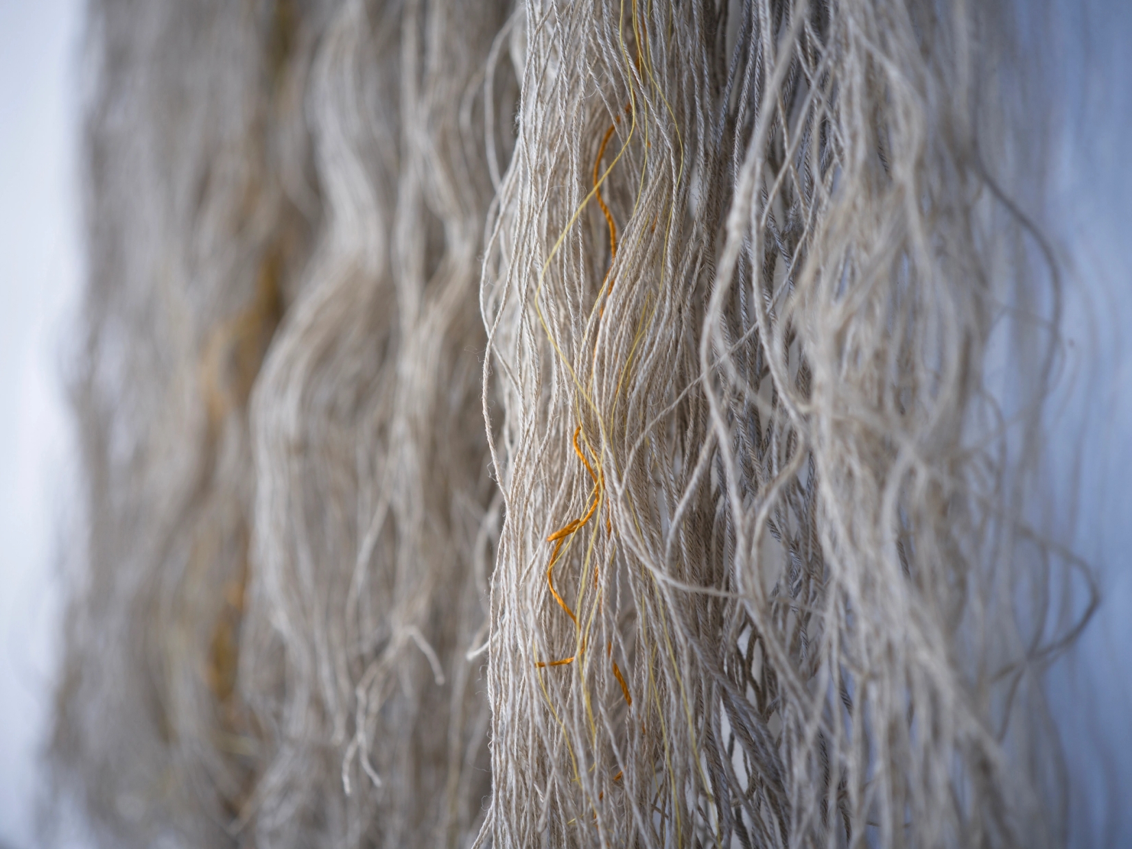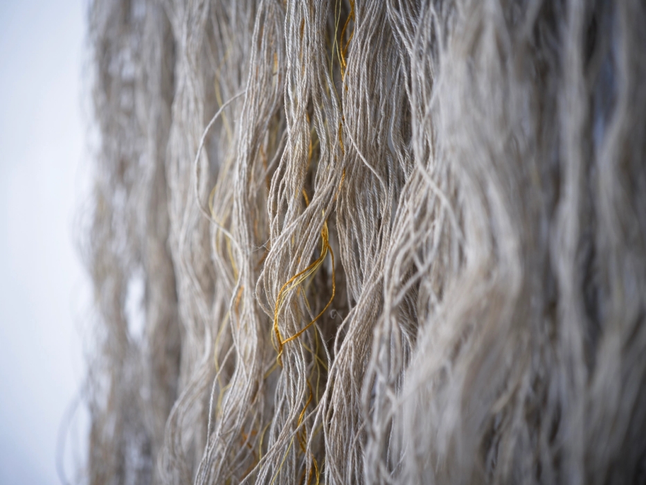 50 år gamle lintråder montert på tre.