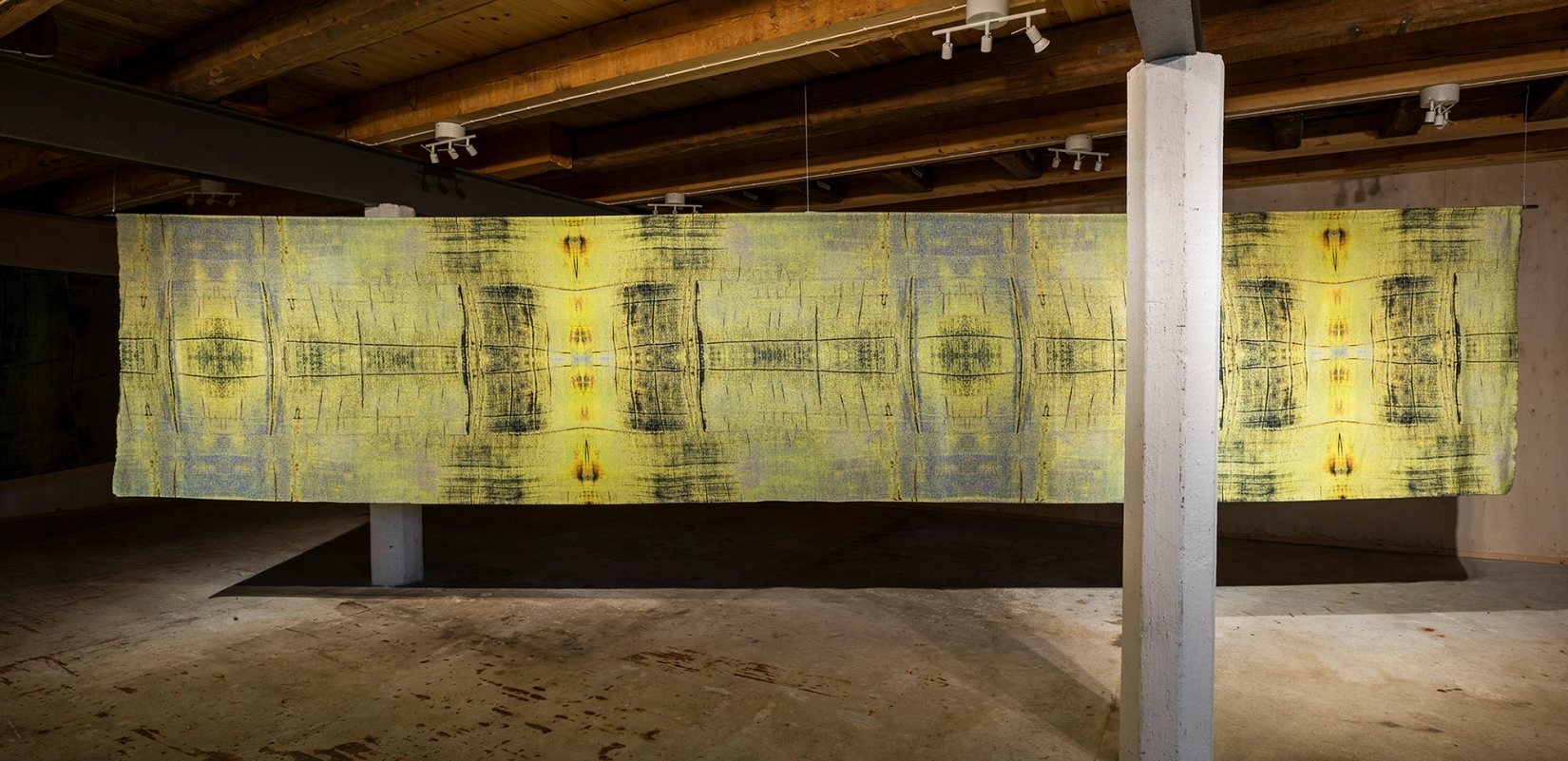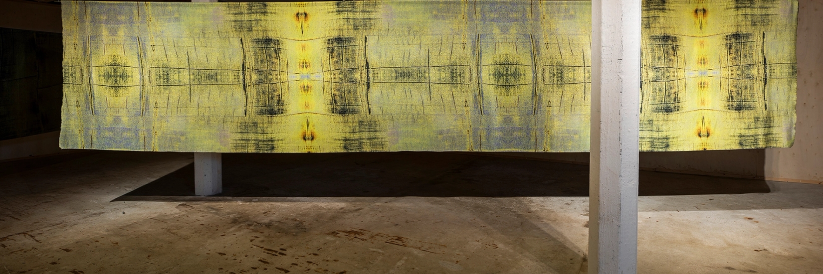 I de senere årene har jeg brukt det tekstile materialet som medspiller i romlige installasjoner, som både har tatt for seg fargen som lys via videoprojeksjoner, og som pigment i form av to-sidige digitalt trykkede fysiske tekstiler.