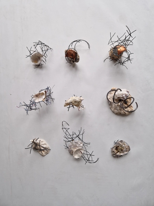 The work explores the encounter between nature’s raw forms and human-made interventions. Finds from the sea – such as the invasive Pacific oyster with its hard, rippled and unpredictable appearance – …