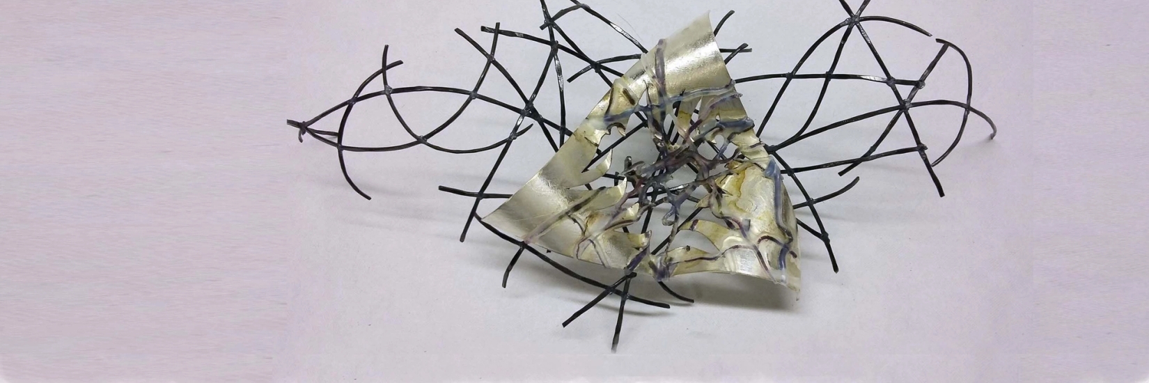 Brosjer i sølv, kobber og foto/PLA. Fokus på kontraster, linjer, retninger og mellomrom.