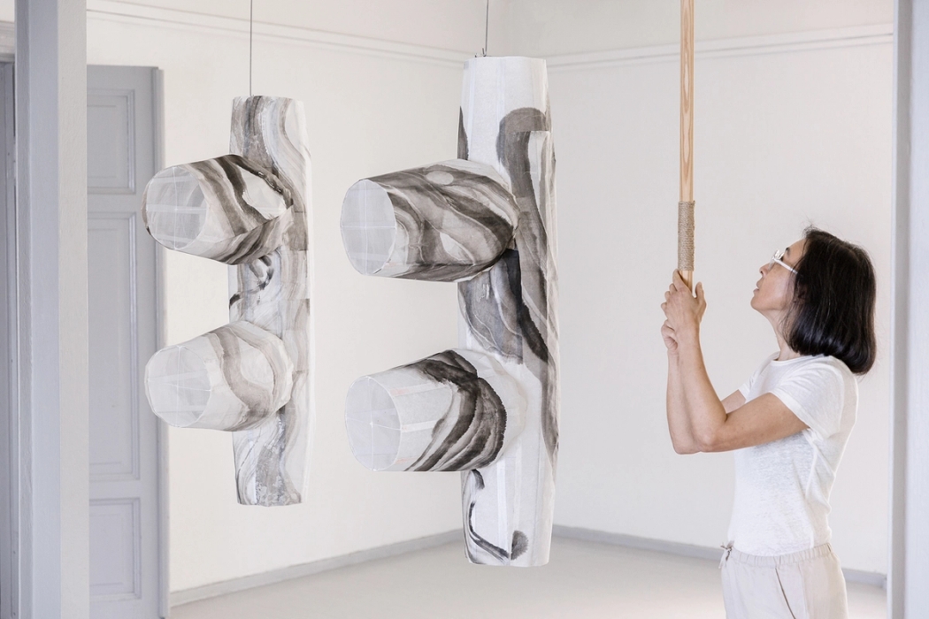 Inspired by fragments of memories in spiritual spaces the artist experienced, like the rolling of prayer wheels, or walls of windmills, a common sight in temples and graveyards; Cheann intended to inv…