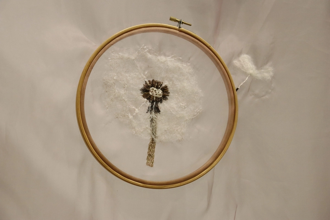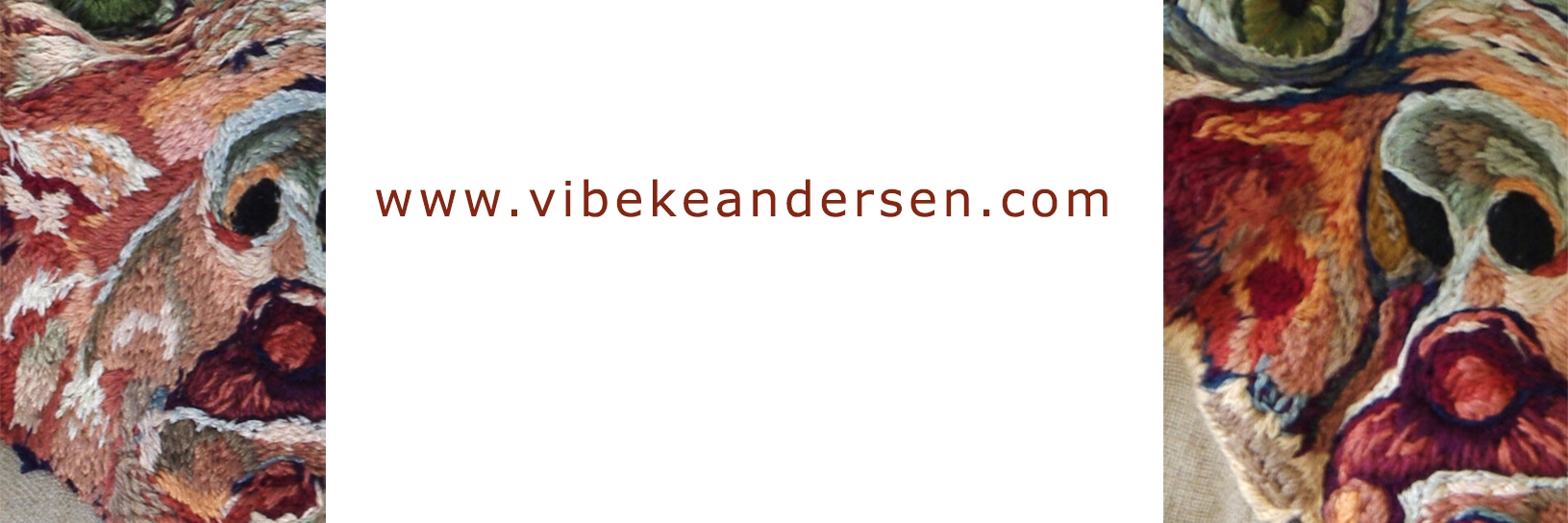Broderi og nålefilt på linlerret. "Maleriet" er basert på en blindtegningsskisse og har fått nytt liv i tekstil.40x65cm